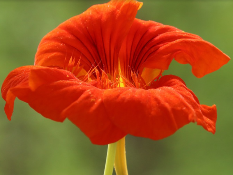 pero lo más llamativo de la Capuchina, son sin duda sus bellas flores de cinco pétalos en forma de trompeta y que tienen colores