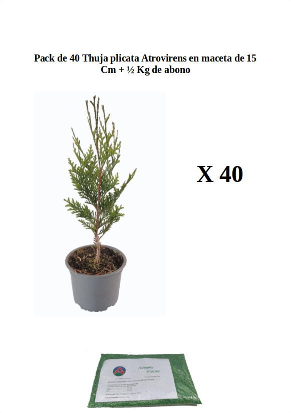 La oferta incluye 40 Thuja plicata Atrovirens y 1/2 Kg de abono .